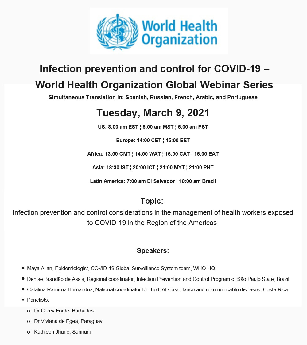 Infection Prevention and Control for COVID-19 – World Health Organization Global Webinar Series